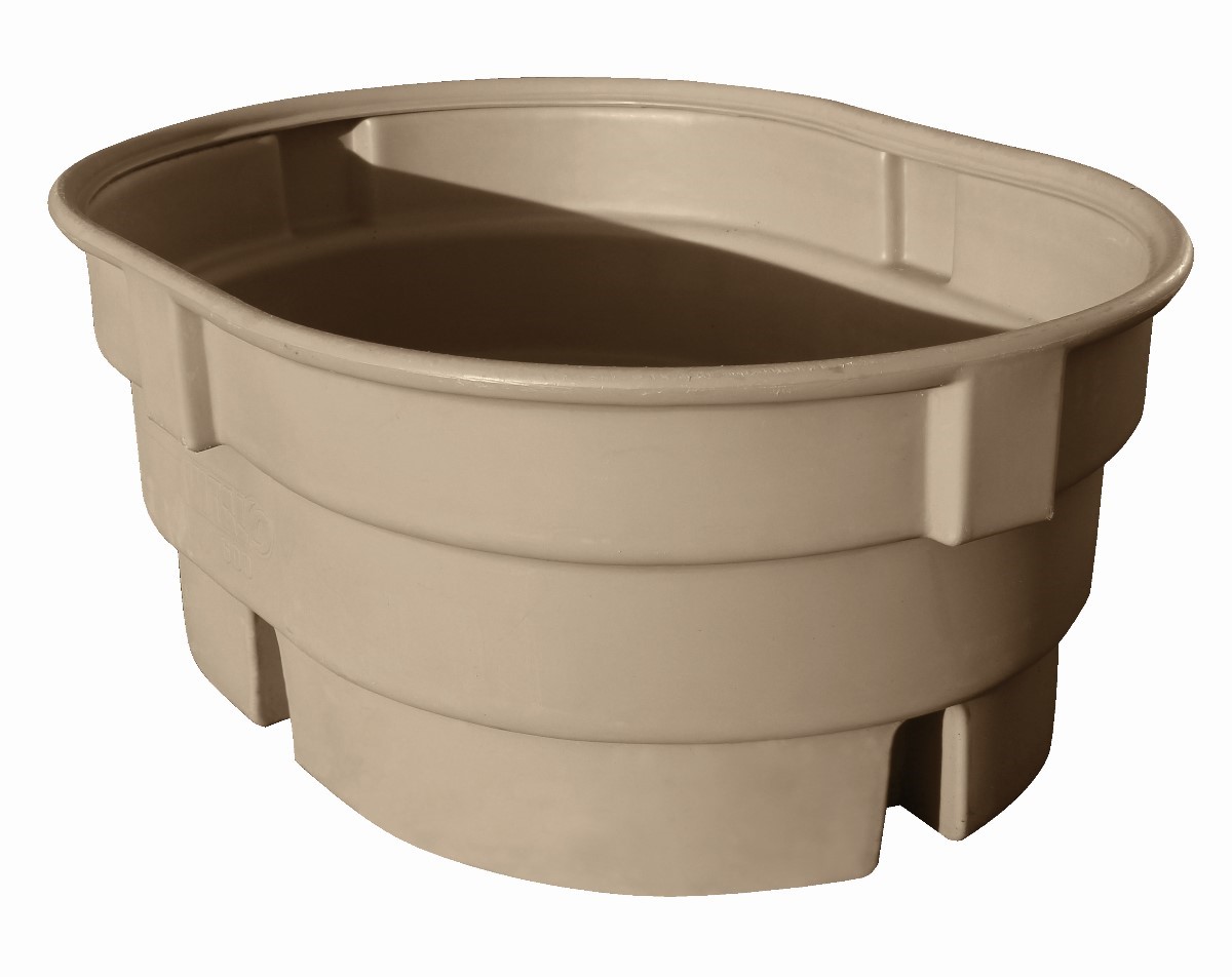 Sa couleur claire permet de mieux intégrer le bac dans le paysage et de garder une eau plus fraiche plus longtemps. Sa forme ovoïde permet de le transporter facilement dans un utilitaire.