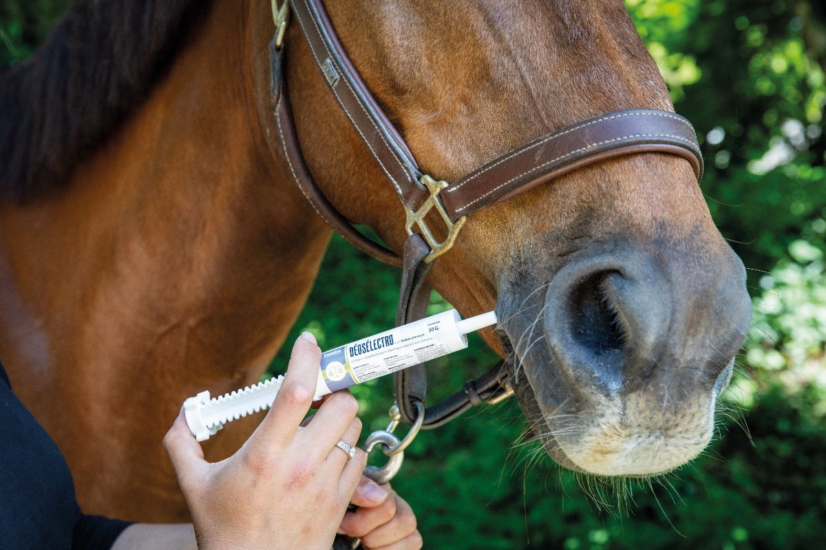 Déosélectro est un aliment complémentaire diététique sous forme de pâte ou de poudre assurant un apport en éléctrolytes au cheval :